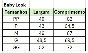 Tabela de Medidas: